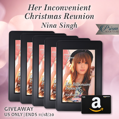 One winner will receive an ebook of Her Billionaire Protector by Nina Singh and a $20 Amazon eGift Card