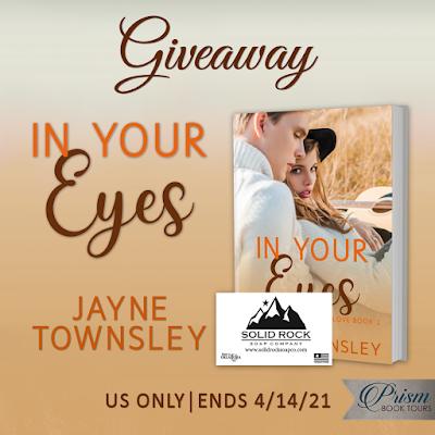 One winner will receive their choice of $15 in products from the Solid Rock Soap Company and a signed paperback copy of In Your Eyes (US only)